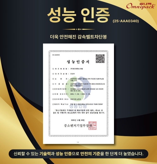 이번 성능인증은 옴니팩이 보유한 기술력과 제품 신뢰성을 공식적으로 인정받았다는 의미로,